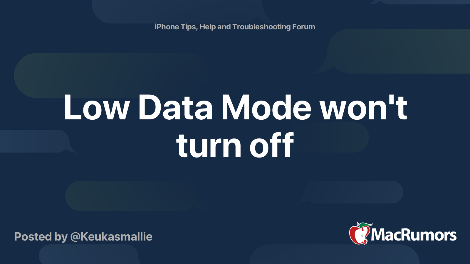About halfway down the page, you'll see the low data mode setting. If you want to turn off low data mode, you can simply turn the toggle off. Our article continues below with additional information on enabling or disabling low data mode on your iphone, including pictures of these steps. Turn off low data mode i have a new xr iphone and when i use it to hotspot it is in low data mode. English australian version and have looked at threads mentioning cellular but that option does not exist on my phone.